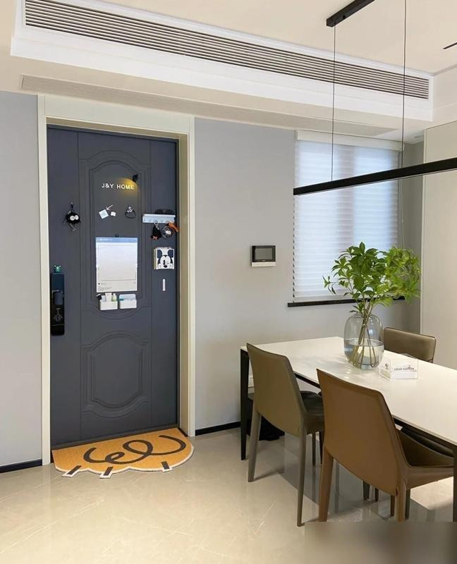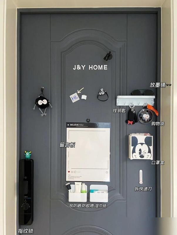 门口的小细节更戳人:磁吸挂钩挂着旅行带回来的小徽章,钥匙、纸巾有专门的收纳盒——是不是很多人家门口都有个“乱堆区”?钥匙找不到,纸巾揉成球,快递单满天飞,可人家把这些“容易乱的小零碎”都安了家,看着整齐,用着更顺,连“出门找钥匙”的焦虑都没了。
